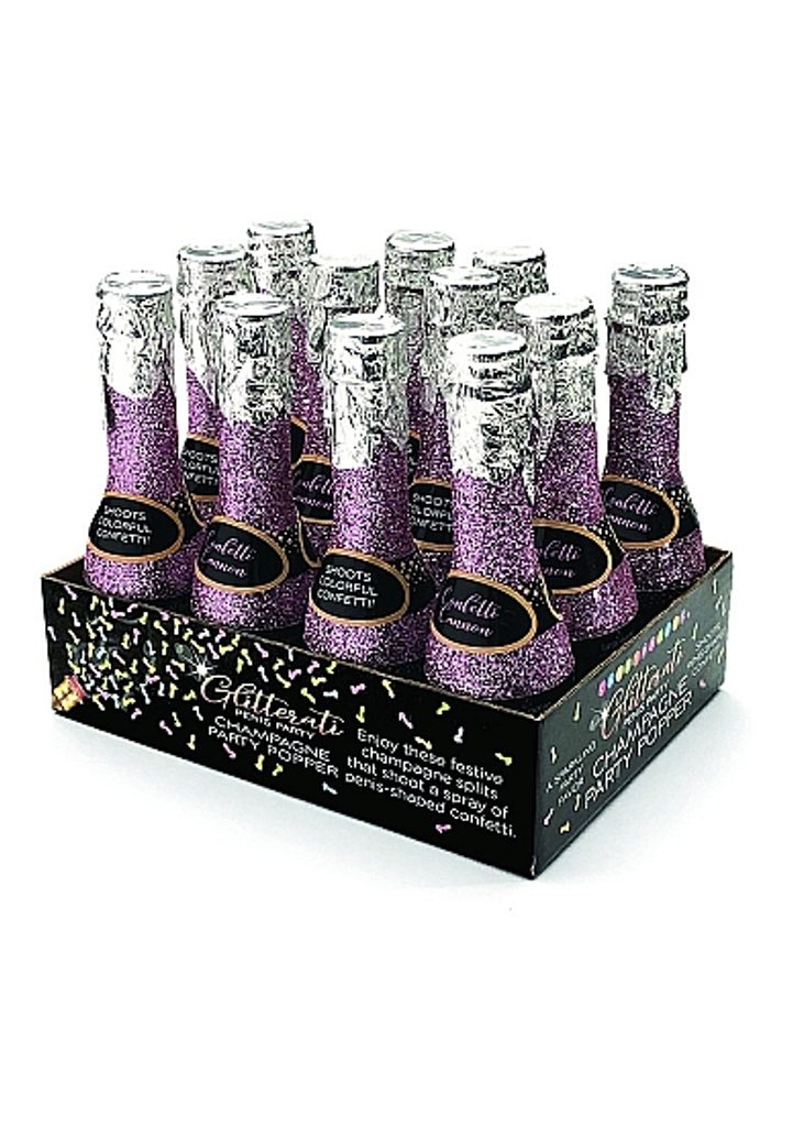 Creat pentru petreceri de nuntă cu stil și eleganță. 12 mini sticle de șampanie umplute cu confetti colorate în formă de penis.