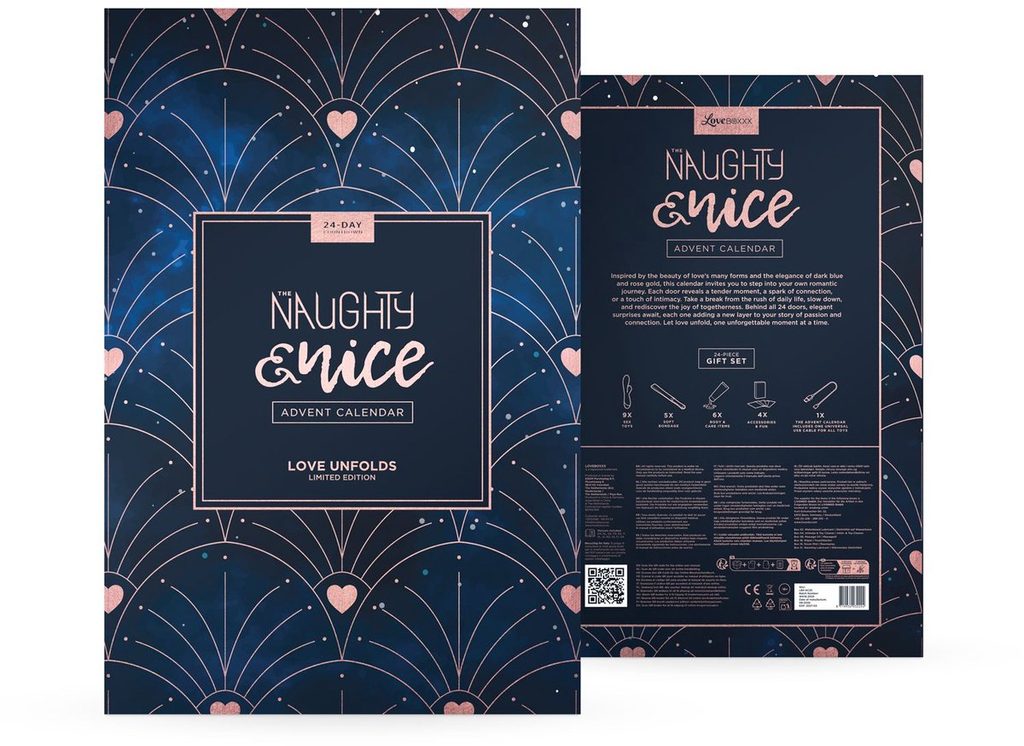 Calendarul Advent Naughty & Nice de la EasyToys este cadoul de Crăciun al anului. Potrivit pentru cupluri, dar și pentru el sau ea. Bucurați-vă de cadouri incitante în nuanțe frumoase de burgund cu detalii aurii, timp de 24 de zile. Produsele variază de la articole de wellness și îngrijire până la accesorii și jucării sexuale care vor face zilele reci din decembrie mai plăcute.