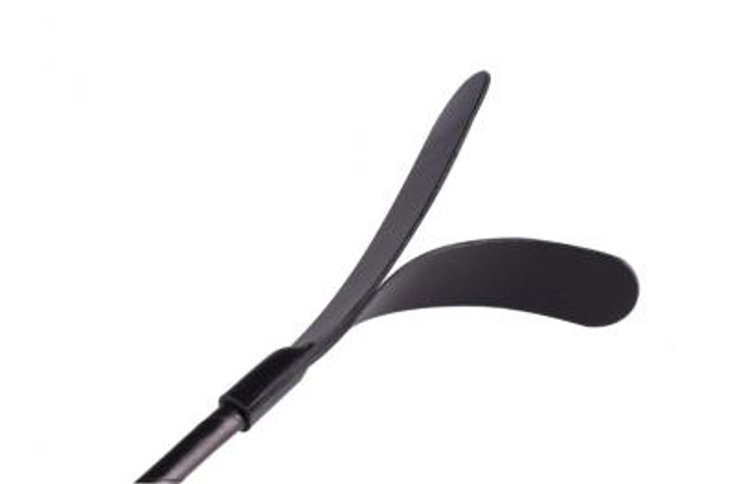 Bici din piele neagră cu vârf în formă de dublu oval. Lungime 50 cm.