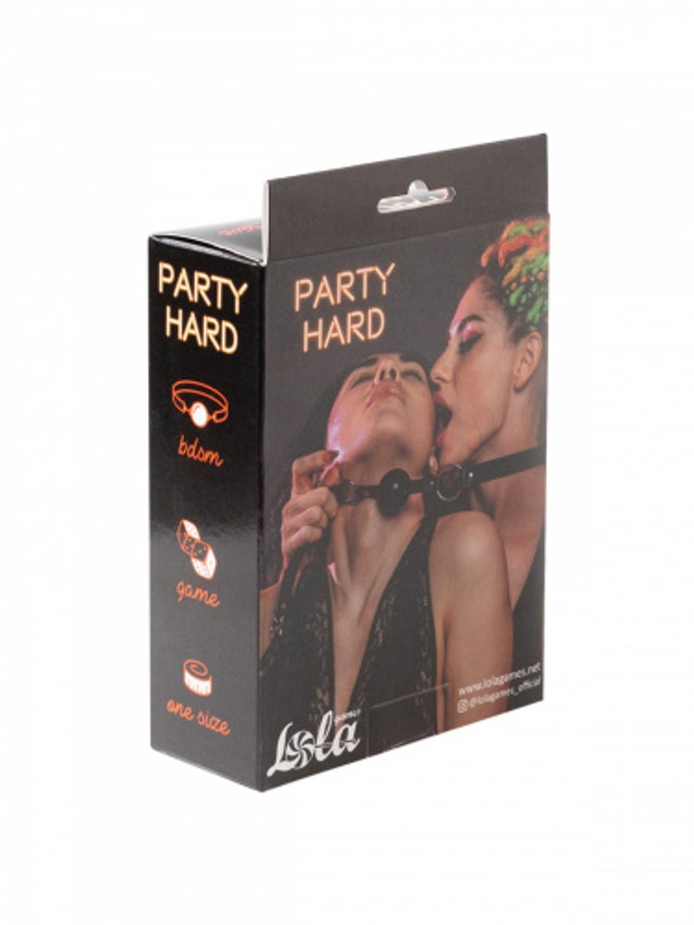 Gag-ul din colecția "Party Hard" este potrivit atât pentru începători, cât și pentru utilizatori experimentați. Cureaua este fabricată din PVC fără ftalați, iar bila este din plastic. Gag-ul are o lungime de 64,5 cm și se potrivește oricărei dimensiuni. Produs în culoare neagră.