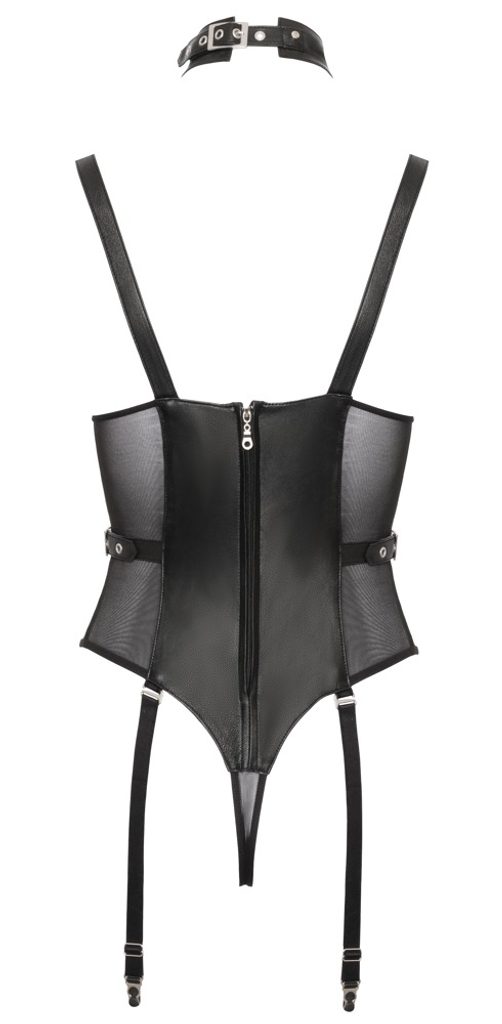 Body din piele cu portjartier și guler ZADO – senzualitate de lux