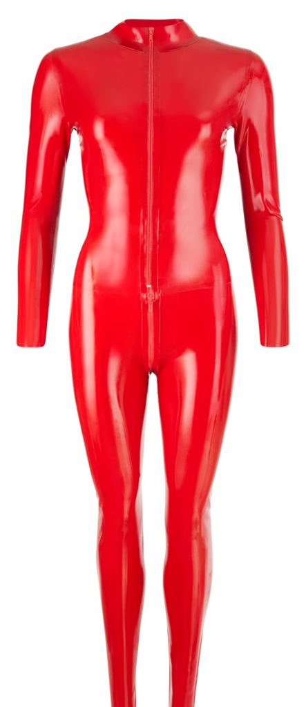 Acest catsuit este ușor cambrat în talie, are guler înalt, mâneci lungi și pantaloni lungi, astfel încât ești acoperită din cap până-n picioare în latex roșu. Această ținută sexy evidențiază perfect formele feminine, iar fermoarul frontal de 50 cm și fermoarul peste zona intimă invită la momente fierbinți și pasionale…