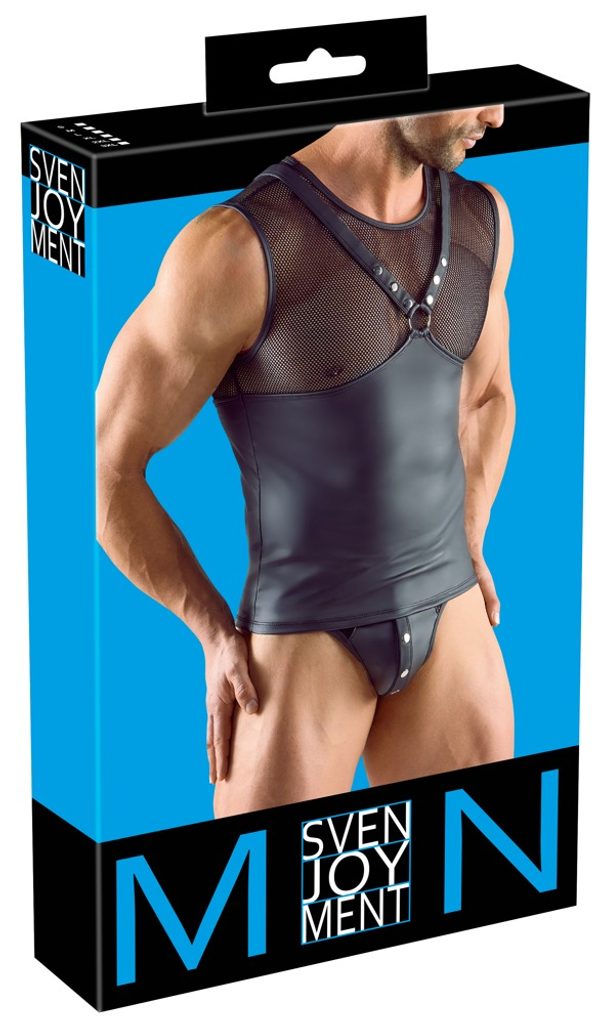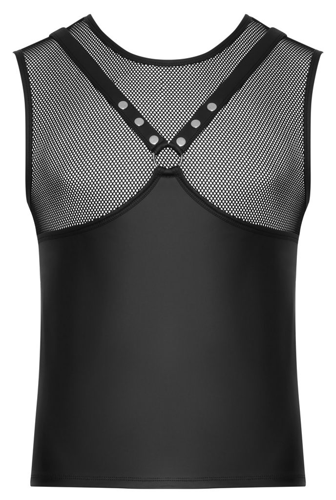 De ce o vei adora? ✔ Design tip ham pentru piept – scoate în evidență mușchii și adaugă masculinitate ✔ Material stilat negru mat cu plasă – o combinație seducătoare de eleganță și provocare ✔ Elemente metalice decorative – capse și inele pentru un aspect dominant ✔ Croială elastică și confortabilă – se potrivește perfect pe corp ✔ Alegerea perfectă pentru un look încrezător și sexy