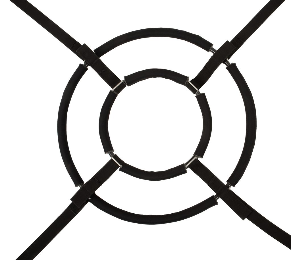 Datorită designului ingenios cu 2 inele metalice căptușite de dimensiuni diferite și curele late, oferă suport perfect și un scaun confortabil.