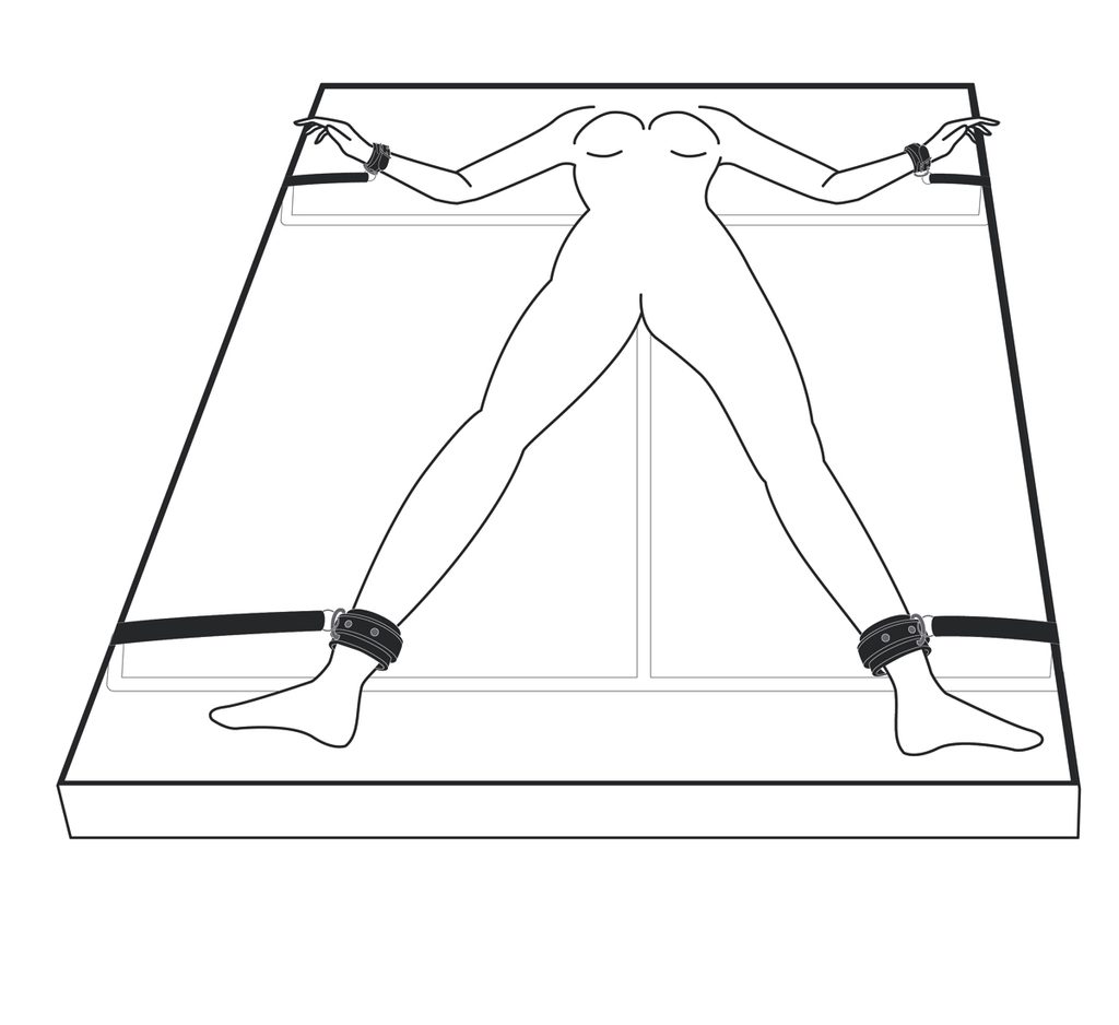 Aplicarea este foarte simplă! Treceți curelele sub salteaua dvs., ajustați lungimea potrivită și puneți cătușele partenerului.