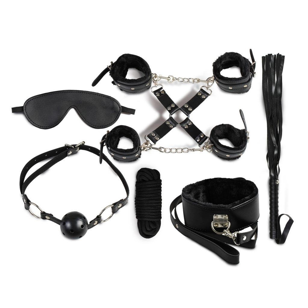Set bondage de la Secret Play. Piele sintetică (100% Vegan). Totul în negru.