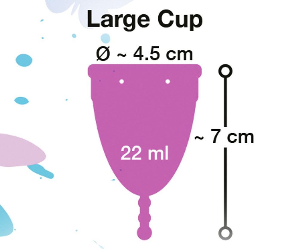 Mărimea LARGE este potrivită pentru femeile care au născut sau pentru cele cu vârsta de peste 30 de ani. Ideală și pentru flux menstrual abundent.