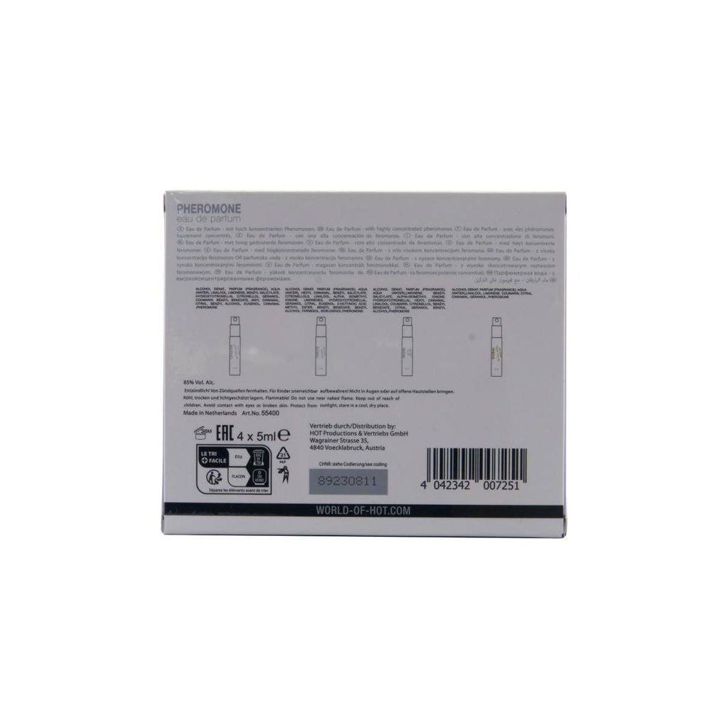 Feromonii, care sunt atractanți sexuali naturali, au capacitatea de a atrage sexul opus. Această nouă colecție folosește un amestec testat cu atenție de feromoni androstenol și androstenon, ceea ce face ca aceste parfumuri să fie o alegere unică. Au un efect erotic puternic și atrag bărbații în mod magic. Sunt parfumuri sofisticate, care nu doar că miros minunat, dar și accentuează atracția sexuală a femeilor.