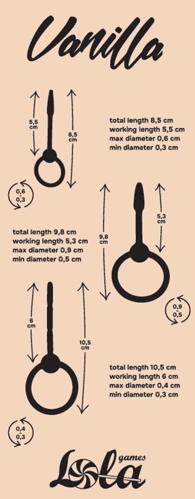 Stimulator 1: Lungime totală – 8,5 cm, Lungime utilizabilă – 5,5 cm, Diametru max. – 0,6 cm, Diametru min. – 0,3 cm