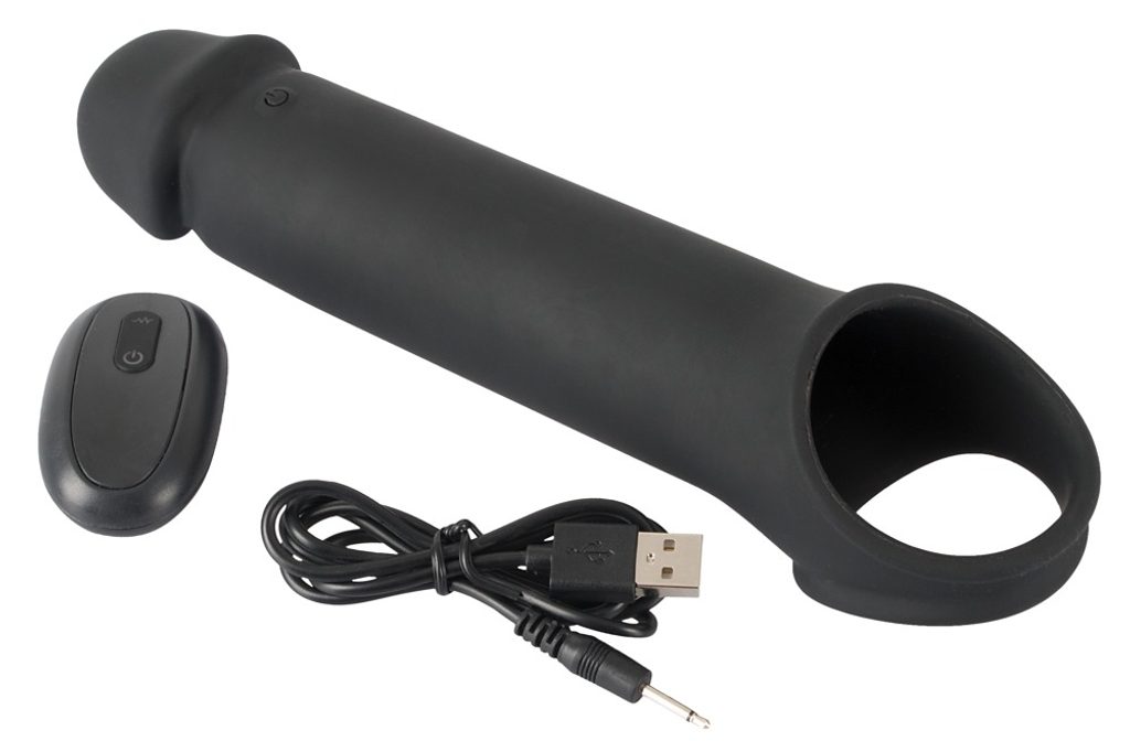 Acest manșon flexibil pentru penis, cu telecomandă de la Rebel, are o textură moale la atingere și ajută penisul să capete forma ideală pentru momente de plăcere intensă. Capătul solid extinde penisul cu 8 cm. Manșonul strâns, care susține erecția, se fixează în jurul penisului, iar inelul cu bile asigură o potrivire sigură și confortabilă – prevenind, de asemenea, alunecarea. Cele 10 moduri diferite de vibrație pot fi setate ușor cu telecomanda – partenerul poate să o folosească, având o rază de acțiune de 12 metri. Se poate reîncărca prin cablul USB inclus. Include baterie (27A) pentru telecomandă.