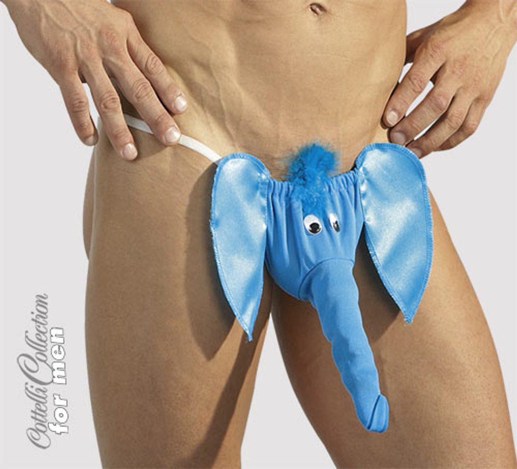 Tanga pentru bărbați Elefant sunt amuzante tanga modelate ca un elefant, cu un trunchi lung tipic și urechi mari. Tanga au ochi mari care se mișcă în timpul purtării. Ideale ca un cadou haios, nu doar de Crăciun. Material: 100% Poliester.
