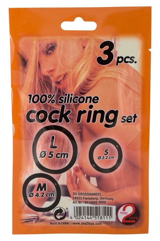 Trei inele negre din silicon pentru erecții de lungă durată de la brandul You2Toys.