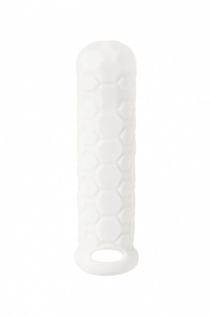 Extensorul integrat Long este foarte moale, dar totuși perceptibil în interior și adaugă trei centimetri la lungimea penisului. Datorită texturii interioare, partenerul care oferă va simți plăcere, în timp ce textura exterioară oferă stimulare suplimentară partenerului care primește. Inelul confortabil de la bază nu va presa scrotul, ci îl va prinde ferm pentru o utilizare comodă, astfel încât manșonul să nu alunece sau să se plieze.