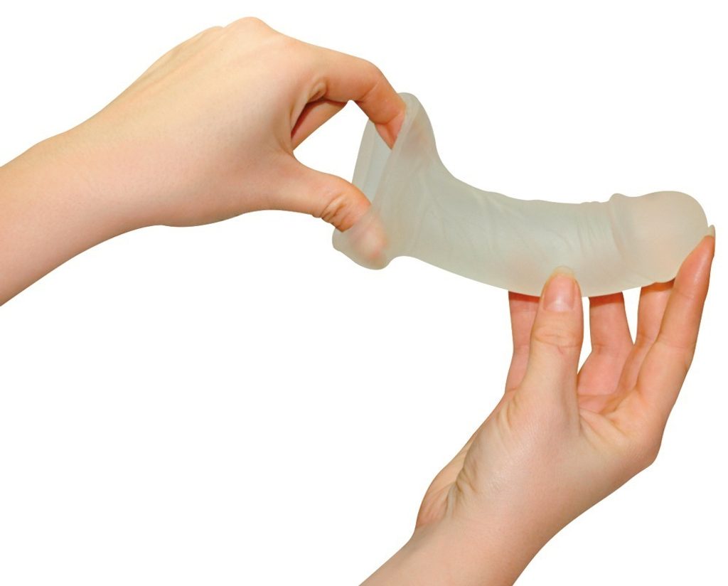 Manșon transparent, care mărește penisul dumneavoastră cu aproximativ 3 cm în lungime și 2 cm în lățime. Diametrul interior (extensibil) de la 2 cm. Lungime totală 16 cm. Poate fi utilizat și pe vibratoare. Textură fină cu vene și gland modelat. Poate fi folosit și ca prezervativ reutilizabil.