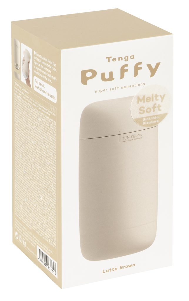 Masturbatorul Puffy de la TENGA, cu o culoare pastelată și o textură super fină asemănătoare cu marshmallow, învăluie penisul delicat și oferă o experiență unică.
