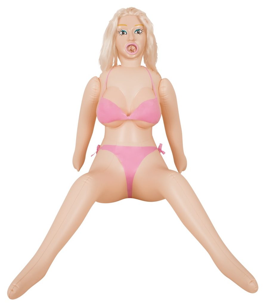 Păpușa gonflabilă blondă Bridget. Această păpușă are 3 orificii senzuale pentru satisfacția dumneavoastră. Păpușa are un chip 3D realist, sâni mari și păr lung blond. Bridget este de dimensiuni reale și are picioarele îndoite. Este rezistentă la apă.