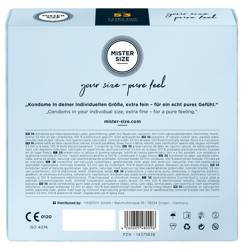 Dacă până acum v-au fost suficiente dimensiunile standard, MISTER SIZE 53 este probabil partenerul potrivit pentru dvs. Împreună, veți porni pe calea de mijloc aurie către o avalanșă de senzații intense. De acum înainte, vă veți simți și mai bine în timpul sexului cu prezervativ și vă puteți lăsa complet purtat de moment. Poate că nu ați căutat niciodată cu adevărat – dar cu atât mai mult ați găsit acum.