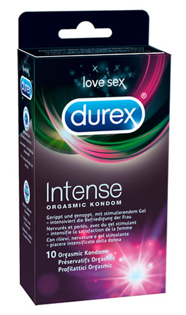 Prezervativele sunt lubrifiate cu un gel stimulativ special, conceput pentru a spori sensibilitatea zonelor intime, oferind senzații de încălzire, răcire sau furnicături. Prezervativele sunt, de asemenea, îmbogățite cu striații și puncte pentru o stimulare suplimentară. Prezervativele Durex Intense Orgasmic sunt transparente, lubrifiate și realizate din latex natural. Au o formă easy-on cu rezervor pentru o potrivire confortabilă.