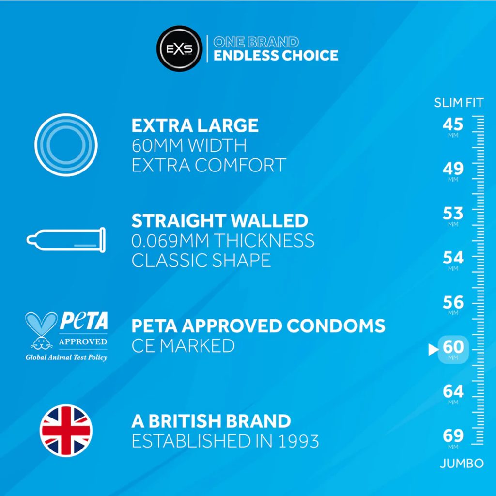 EXS este un prezervativ sigur și de încredere, care a fost 100% testat electronic și certificat prin 2 teste independente de calitate (CE și BSI). Testarea conform standardelor stricte europene și certificarea BSI asigură că aceste prezervative oferă protecție de încredere și un nivel ridicat de confort.