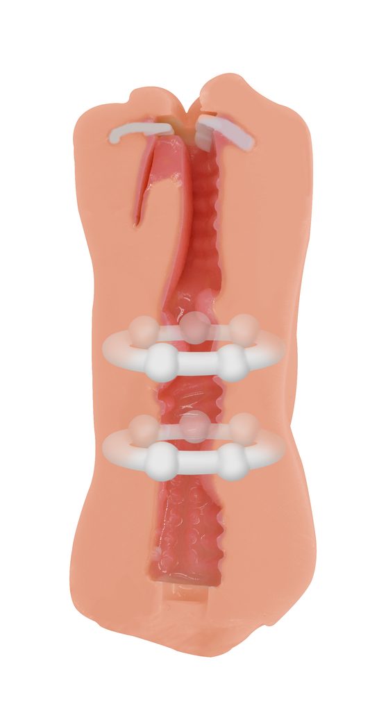 Interiorul ascunde o textură anatomică bine realizată, care imită fidel experiența reală. Datorită stratului dublu de material, masturbatorul se simte moale și catifelat la atingere, creând o senzație autentică de contact corporal.