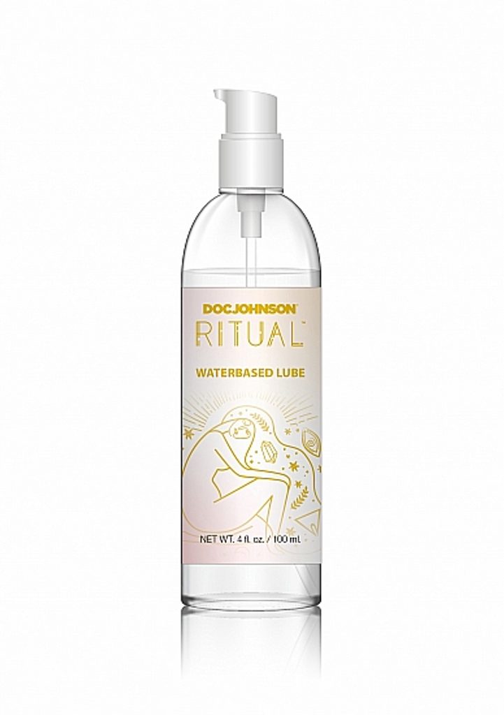 Lubrifiantul pe bază de apă Ritual de la Doc Johnson este un gel testat dermatologic, fără grăsimi, fără coloranți, fără miros și fără gust.