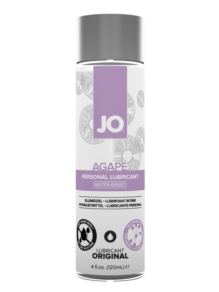 JO® AGAPÉ (se pronunță ah-gah-pay) este un lubrifiant personal conceput pentru a imita lubrifierea naturală. Această formulă nouă și îmbunătățită pe bază de apă nu conține glicerină, glicol și parabeni; ideal pentru persoanele care sunt atente la ingrediente. În plus, formula incredibil de ușoară oferă o alunecare delicată, la fel de fină ca mătasea. Un produs pe care trebuie să-l încerci! JO® AGAPÉ este sigur pentru utilizarea cu jucării, compatibil cu majoritatea materialelor și, cel mai important, ușor de curățat.