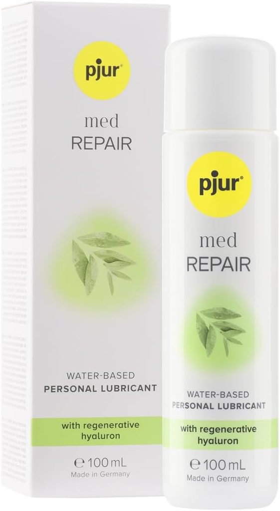 Lubrifiant personal pe bază de apă Pjur med REPAIR glide conține hialuron pentru lubrifiere de lungă durată. Hialuronul poate lega cantități mari de apă și crea mici perne de apă, ceea ce crește semnificativ efectul lubrifiant al produsului. Hialuronul ajută pielea să se regenereze eficient. Acest lubrifiant personal pe bază de apă este ideal pentru pielea uscată și solicitată din zona genitală.