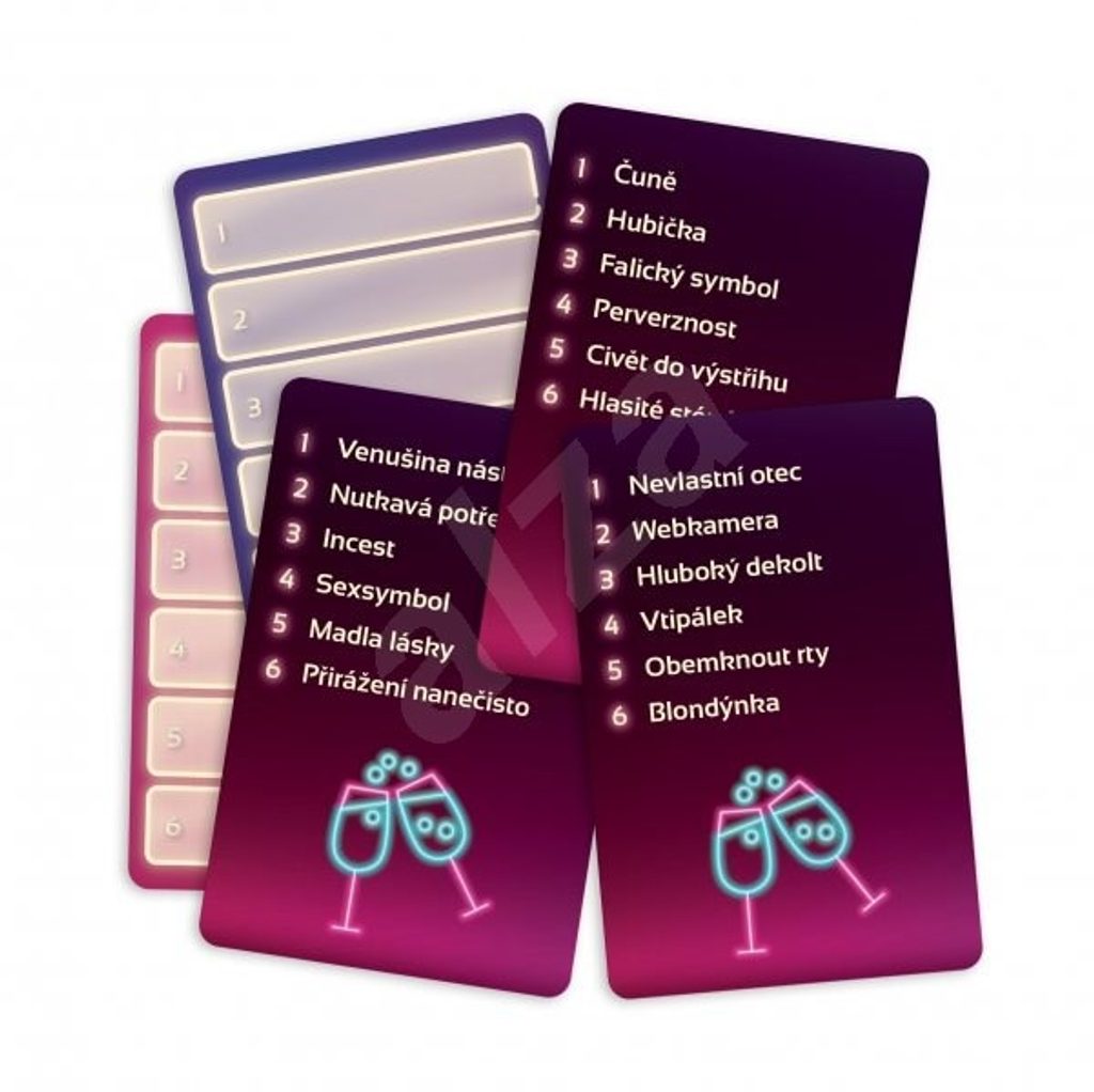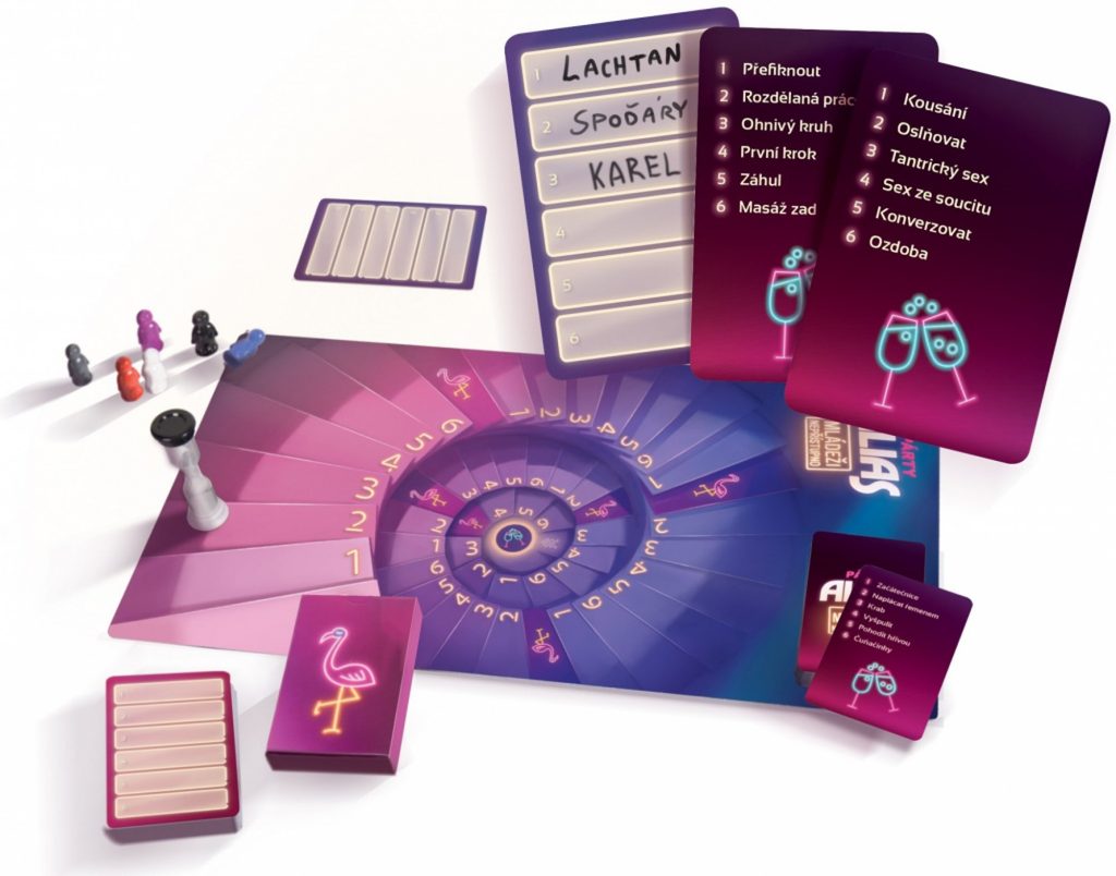 Alias de petrecere - Interzis minorilor este o variantă a faimosului joc social Párty Alias, care include doar termeni pentru adulți, explicându-se prin asocieri. Este un joc care te va face să roșești și să râzi în hohote! Se joacă în echipe. Scopul jucătorilor este să ajute coechipierii să ghicească, prin asocieri, cât mai mulți termeni "pentru adulți" într-un timp limitat. Pentru fiecare termen ghicit corect, echipa mută o figurină cu un spațiu înainte. Primul care ajunge la linia de sosire câștigă.