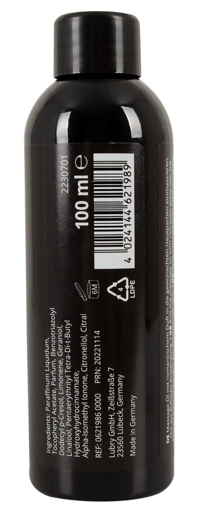 Ulei de masaj erotic hrănitor, de înaltă calitate, cu parfum senzual și romantic. Solubil în apă. Lubrifiere de lungă durată. Fabricat în Germania.