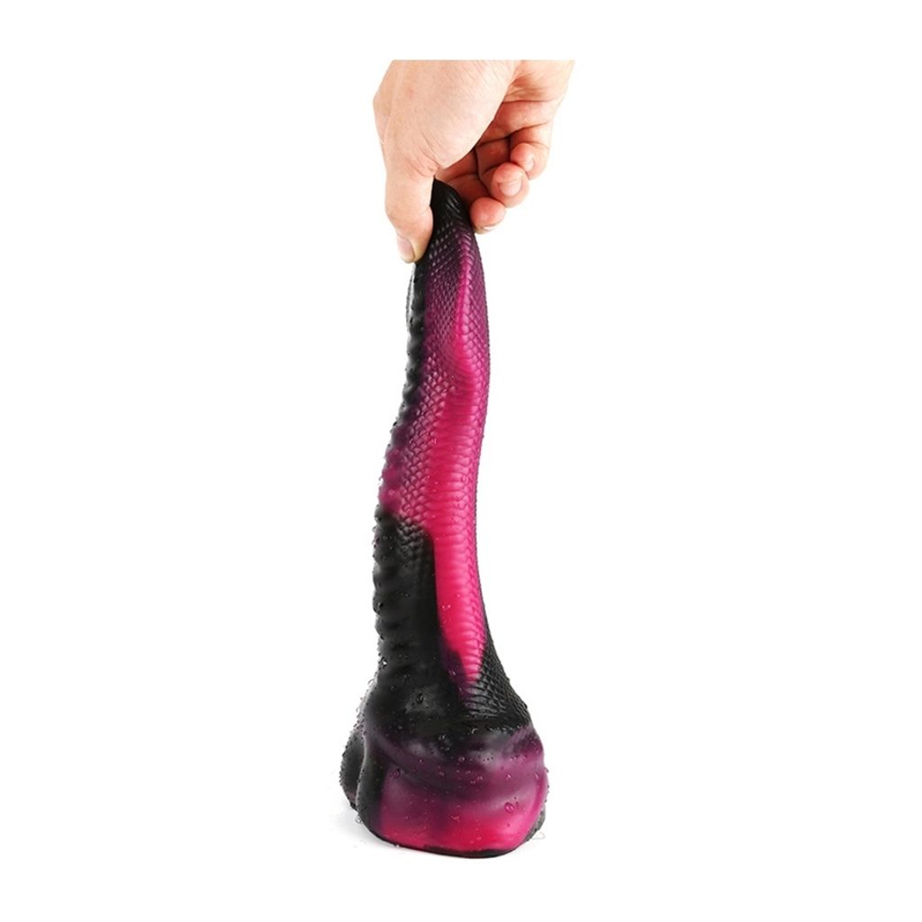 Acest dildo Cobra Deluxe este o jucărie sexuală din silicon, frumos realizată. Are forma unui cap de cobră, cu flexibilitate și o suprafață texturată realistă. Imită perfect un șarpe pentru senzații incredibile în timpul inserției și jocului.