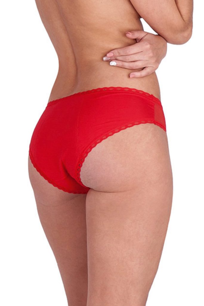 Acest model de chiloți are un design clasic, elastic, confortabil, cu detalii din dantelă și transparență pe laterale și margini decorate cu tivuri care se mulează pe corp. Oferă întărire de la zona intimă până la zona lombară. Proiectați special pentru zilele cu menstruație mai ușoară, fiind ideali și pentru utilizare zilnică sau în combinație cu o cupă menstruală.