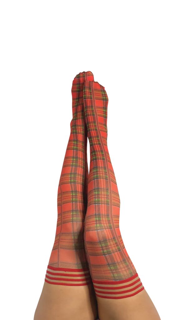 Clasice, ciorapi până la coapse în carouri roșii. Ciorapii Grace combină eleganța unei ținute de afaceri rafinate cu uniforma clasică de școală veche. Etalați acest stil versatil la următoarea întâlnire importantă, adăugați-i într-un costum sau purtați-i în timpul sărbătorilor! Ciorapii până la coapse Kix'ies sunt concepuți pentru a fi purtați întreaga zi, având o bandă antiderapantă. Oferim ciorapi de la mărimea Petite până la Plus Size, fiind cei mai buni ciorapi până la coapse care chiar rămân pe poziție!