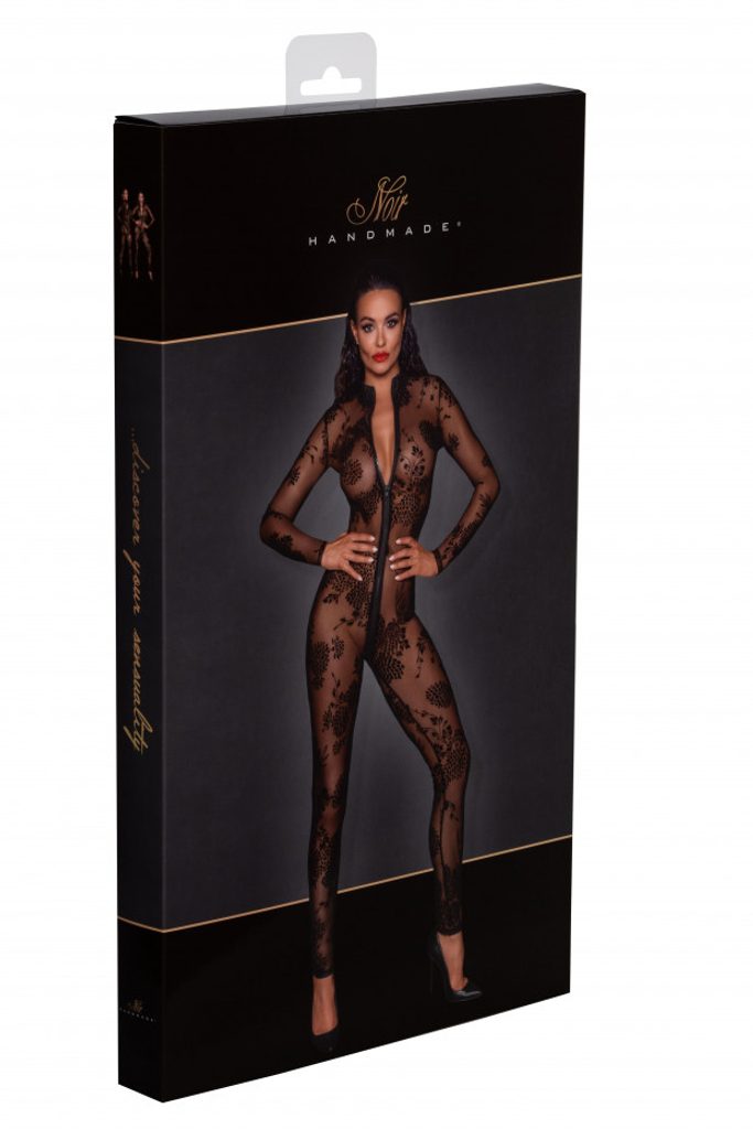 Această salopetă lungă și sexy din tulle este decorată cu broderie în formă de fulgi și un fermuar lung 3 în 1, care merge de la guler până la șliț. Acest design curat pune în evidență feminitatea cochetă.