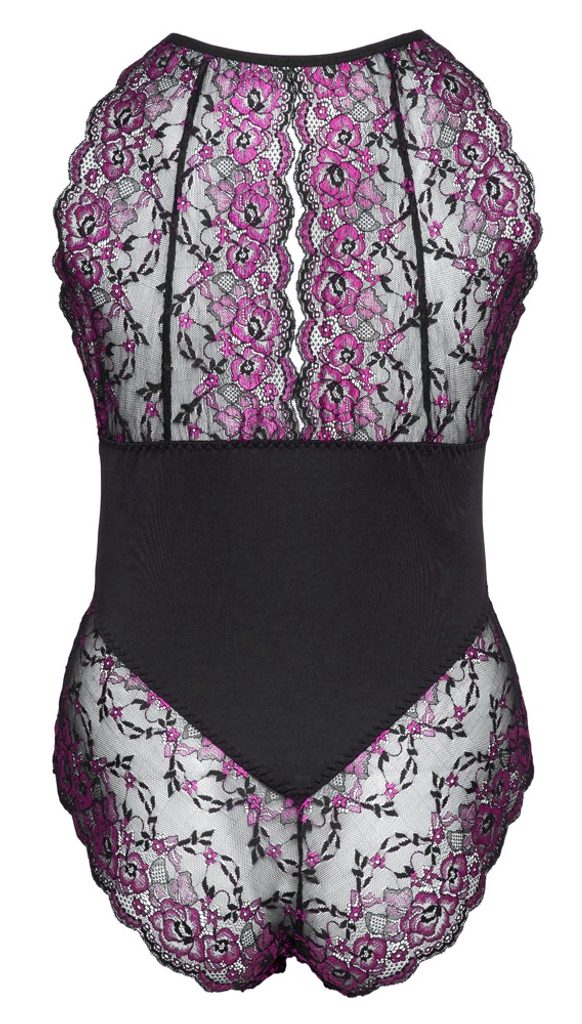 Partea din față și spate sunt decorate cu decupaje expresive, seducătoare. Închiderea la gât se face cu un cârlig, iar în zona intimă există un sistem practic de închidere cu cârlige – facilitează îmbrăcarea și dezbrăcarea și permite să porți body-ul chiar și în timpul jocurilor erotice sau al actului sexual.