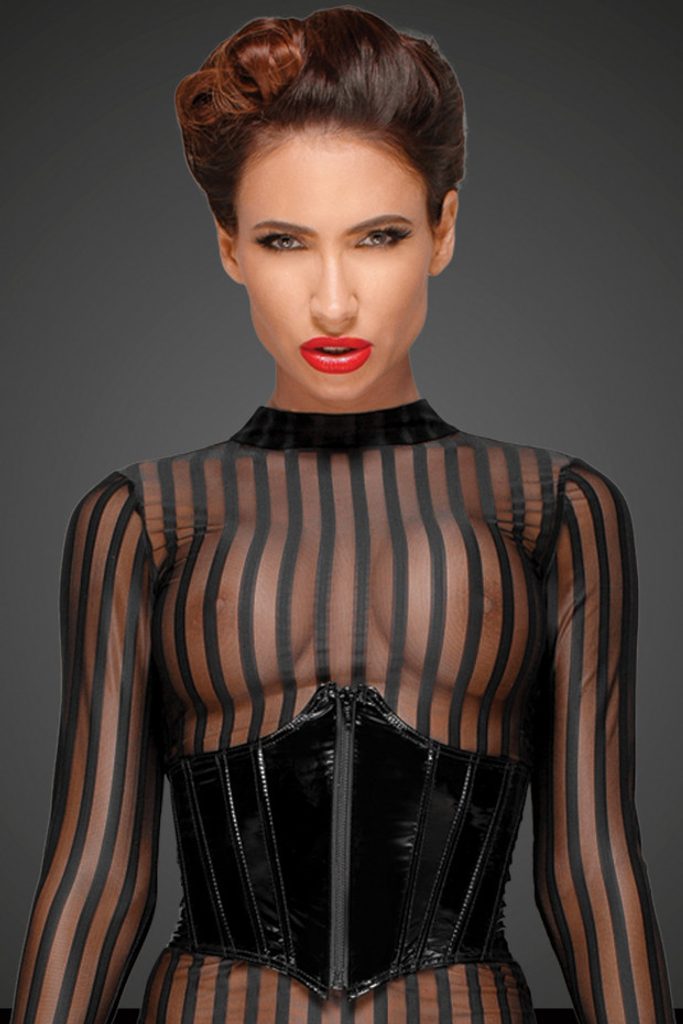 Rochia clasică spectaculoasă este confecționată din tul decorativ, elastic și foarte delicat. Gulerul înalt se închide cu un nasture. Decolteul sexy de pe spate este decorat cu o margine din dantelă.