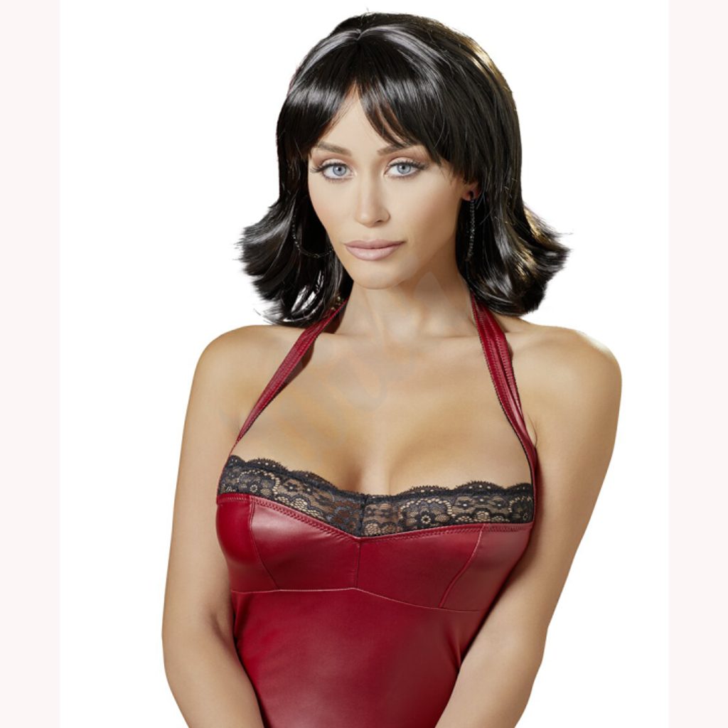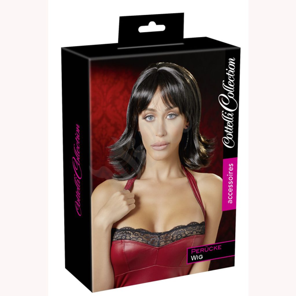 Perucă scurtă, realistă pentru femei. Culoare neagră. Lungime 30 cm.