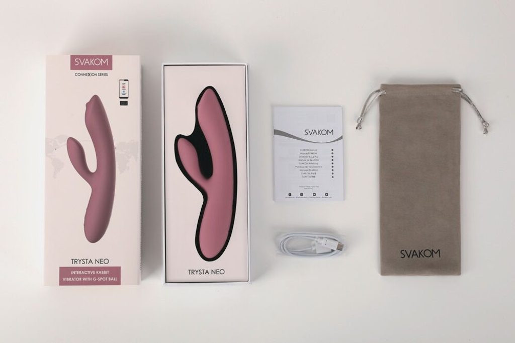 Trysta Neo de la SVAKOM este un vibrator sofisticat tip iepuraș, care stimulează simultan vaginul și clitorisul prin moduri variate de vibrație. O bilă specială de masaj, ascunsă în capătul dispozitivului, se mișcă în sus și în jos pentru a stimula țintit punctul G. Modurile pot fi ușor controlate prin butoane sau combinate în funcție de starea de spirit.